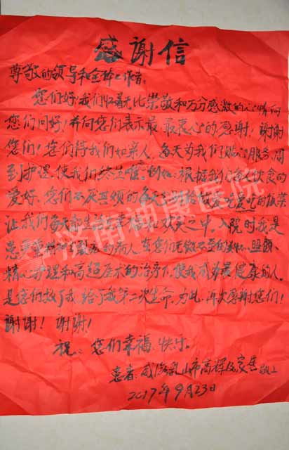 济南神康医院秉承“以人为本,以病人为中心”的服务宗旨,践行“捍卫人类精神家园”的伟大使命,在解决老百姓看病难、看病贵、构建和谐医患关系的问题上更是责无旁贷。对“送红包”等不良现象坚决说“不”,将“无红包”医院切实的落到实处,树立医德新风尚。我院上下同心协力,全面打造绿色、纯净的就医环境,让患者踏实就医、放心就医。