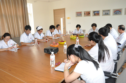 会上,张淑芹院长首先就医院党政建设做了简单介绍,这几年医院的党支部不断发展壮大,不仅有一批老同志的支持,也在不断注入新鲜血液。老同志要发挥模范先锋带头作用,指导新同志不断学习进步。为加强医院党组织建设,张淑芹院长对所有党员做出明确分工,除宣传委员辛显福主任、组织委员苏玉洁主任外,又划分两小组,门诊为一组,病房为一组,各组各司其职、互相配合、团结合作,努力使党的建设方针和路线传达到每个同志。鼓励积极分子加入到院党支部建设的队伍中来,只有源源不断的新鲜血液的注入才能院党支部与时俱进、发展壮大。