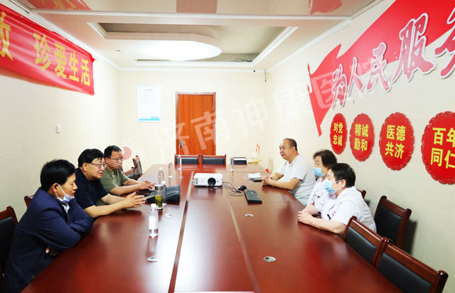 调研组实地察看了医院整体环境、硬件设施以及患者的康复治疗情况,考察了济南神康医院精神残疾康复服务工作,并听取院方负责人对医院精神残疾人管理、运行情况、存在问题和下一步发展规划的介绍。济阳区残联领导表示,做好精神病人的诊治和康复工作,不仅能够解决精神病患者的痛苦和家庭负担,也有助于维护社会的安定,希望济南神康医院继续秉承以人为本的理念,做好精神病患者的康复治疗工作,使其早日回归家庭、融入社会。